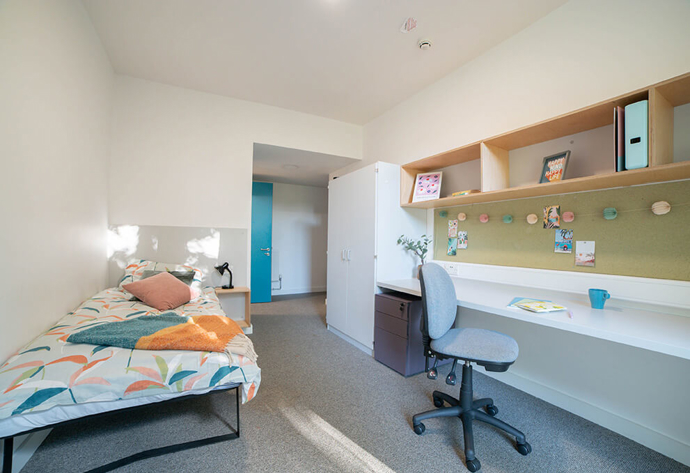 You will have your own private room and bathroom and a shared kitchen and living space with your flatmates. Rooms at Chadwick Hall are available to new undergraduate, postgraduate and PGCE students and all rooms include a desk, chair and wardrobe.